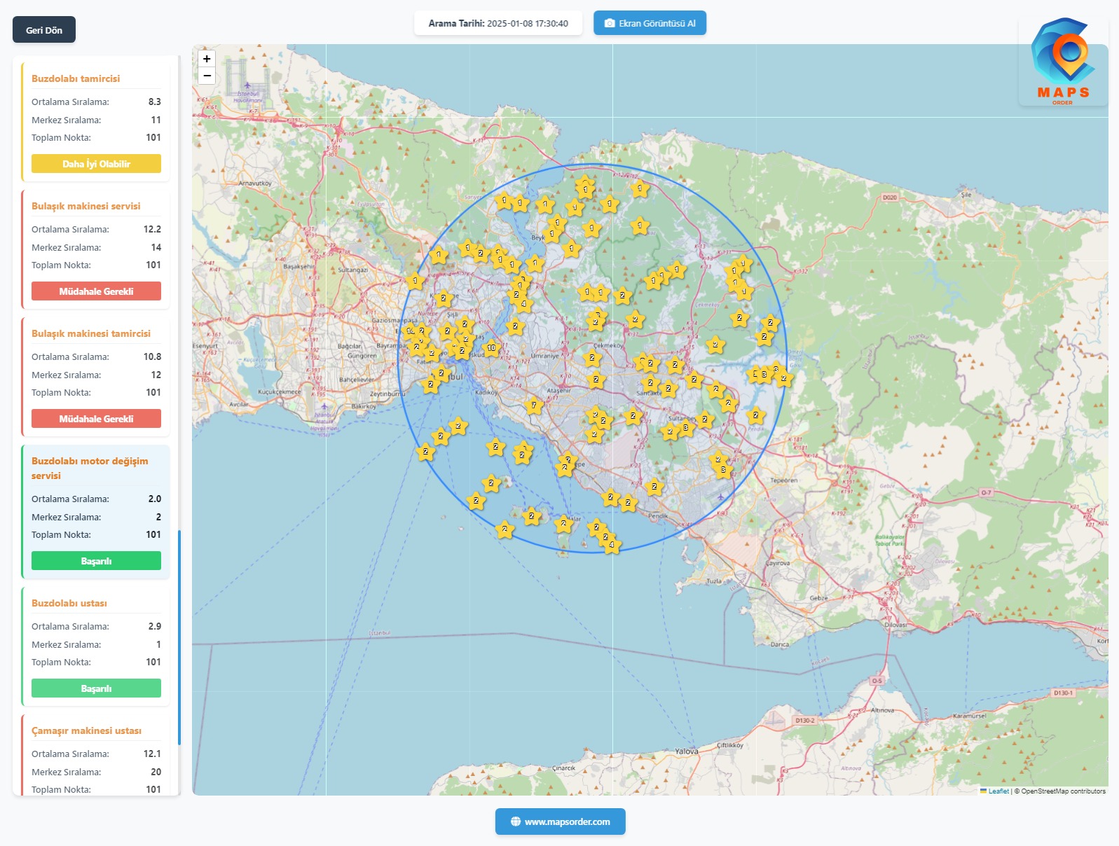 • Harita sıralama takibi , Google Maps ranking tracking